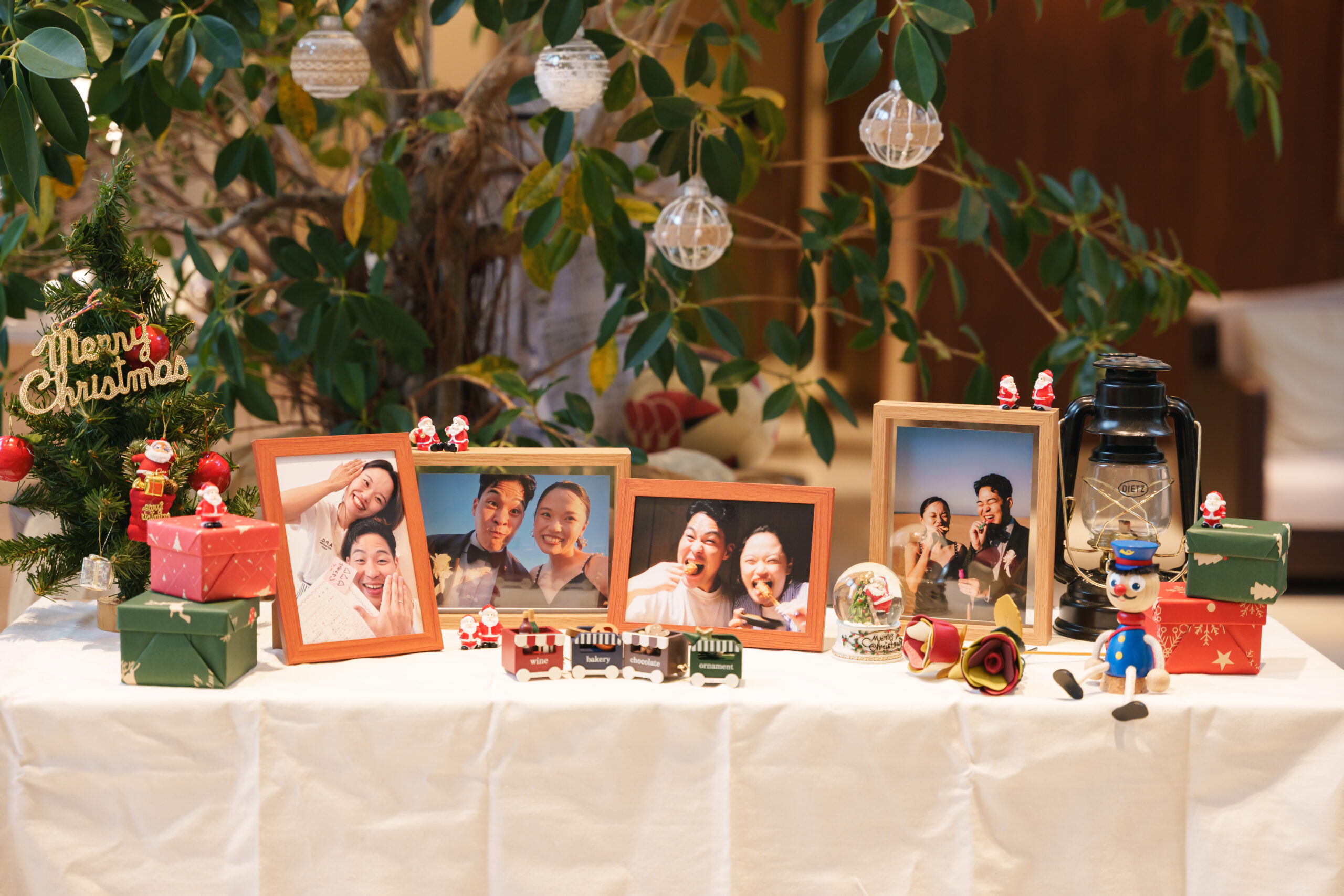 まずゲストをお迎えしたのは、クリスマスモチーフの小物が並ぶウェルカムスペース。