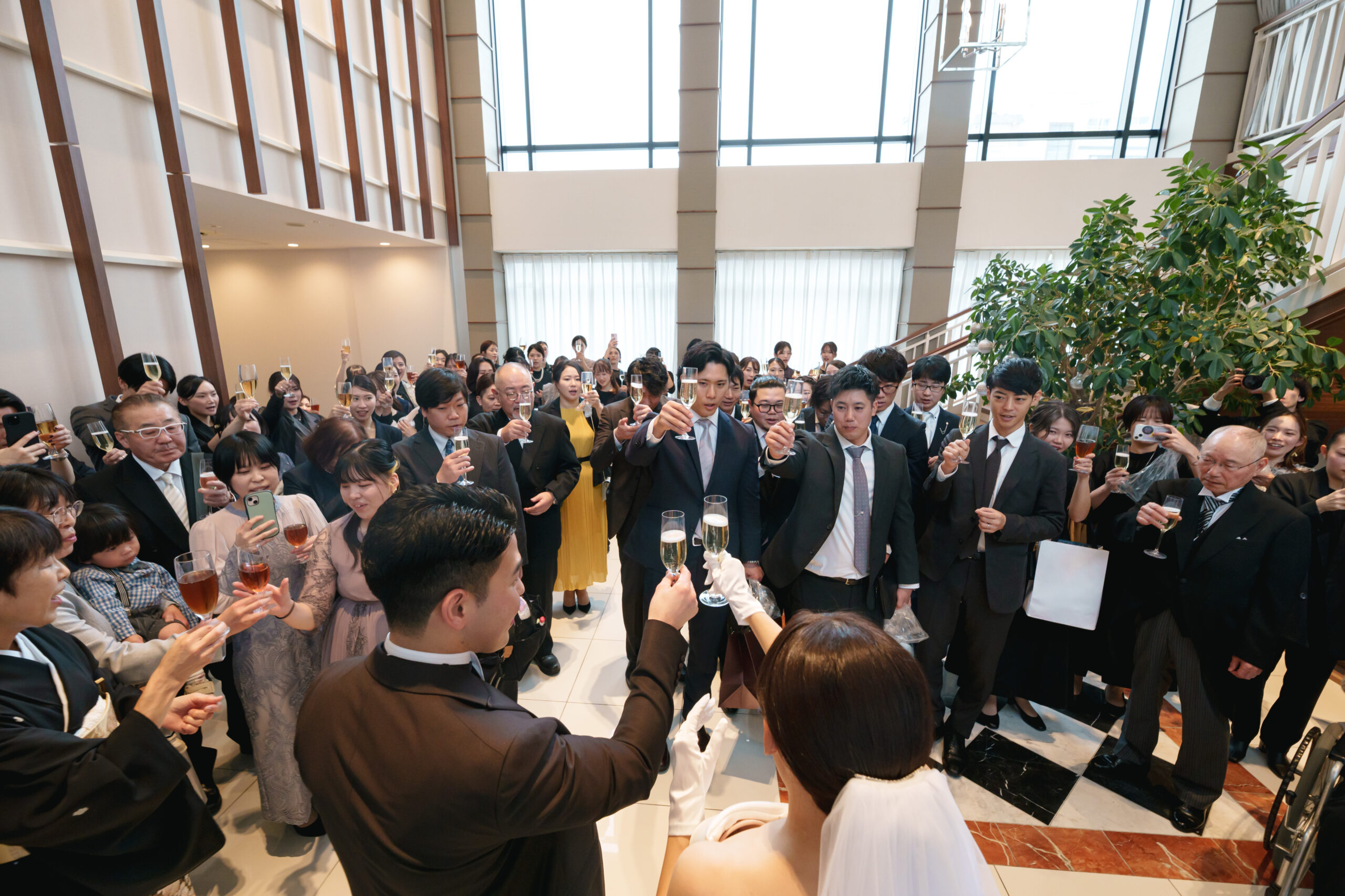 「披露宴が始まるまでにも一度全員で乾杯をしたい!」というお二人のご希望から、