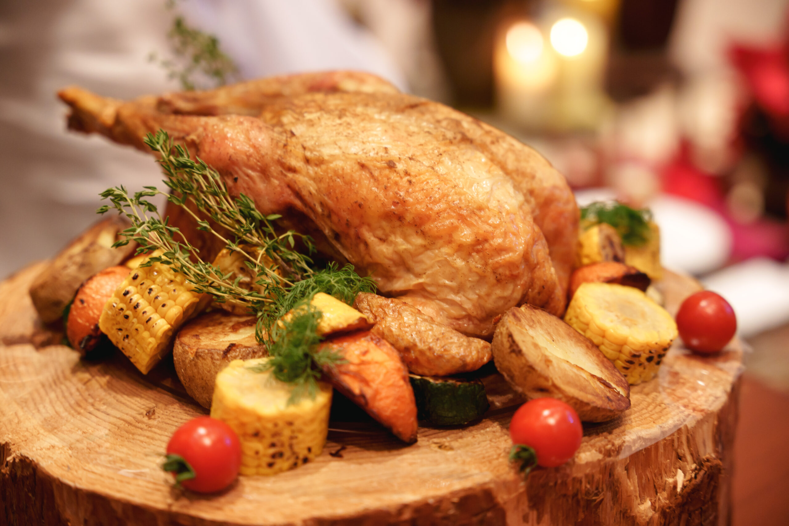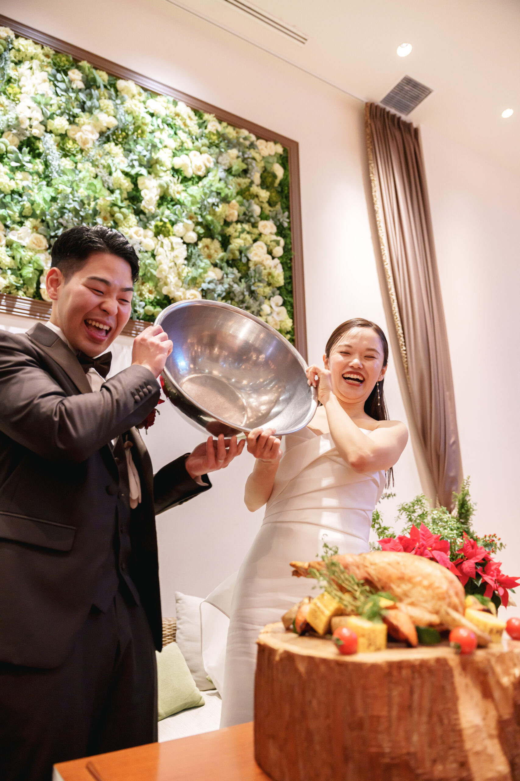そんな中登場したのは、通常のウェディングケーキ…ではなく、特大サイズのローストチキン!