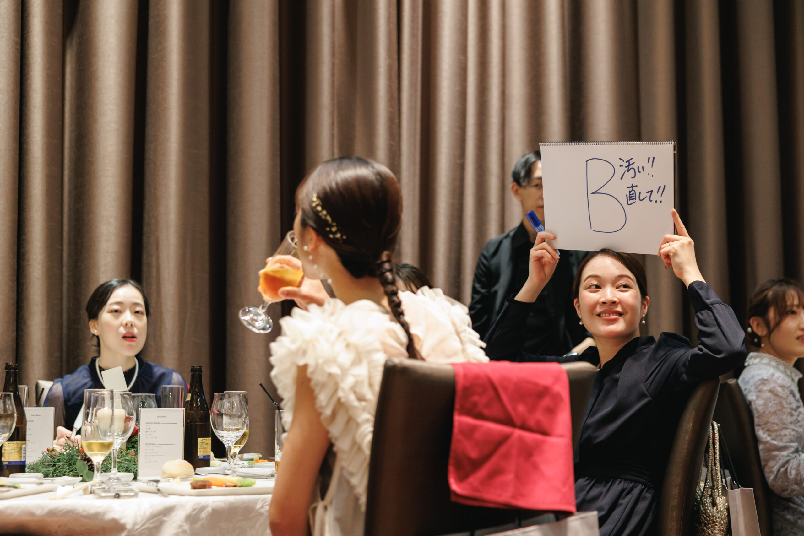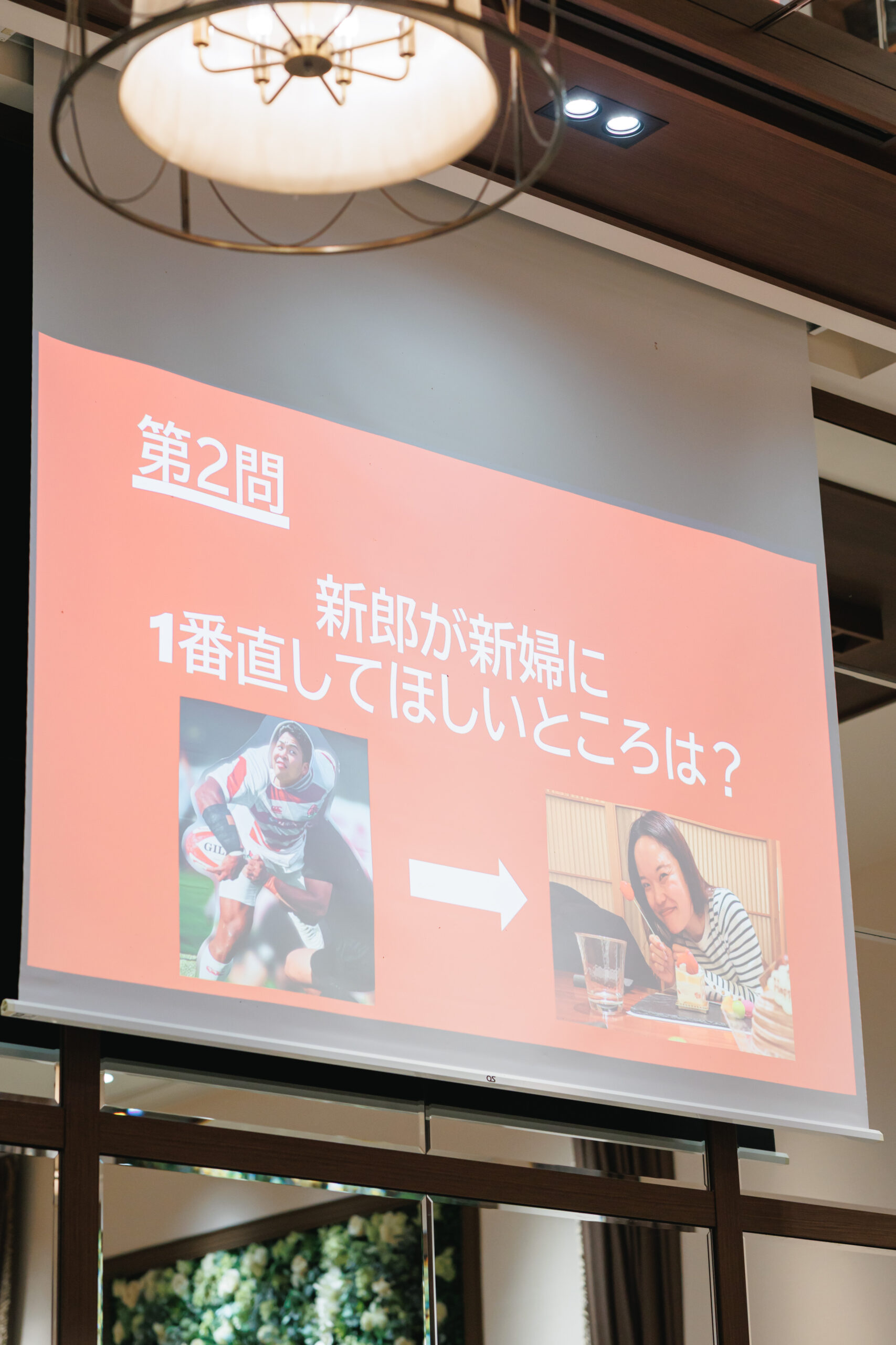 ゲスト参加型の新郎新婦クイズ大会では、おふたりの意外な一面が次々と明らかになり、会場は大盛り上がり。
